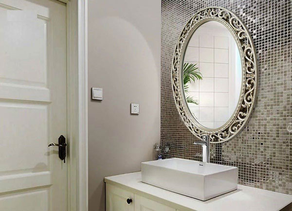 Nếu nhà tắm phong cách lãng mạn, mềm mại thì bạn nên lựa chọn gương có họa tiết viền uyển chuyển. Ngoài ra, nếu muốn tạo sự sang trọng cho phòng tắm, bạn có thể lựa chọn gương có khung mạ bạc.